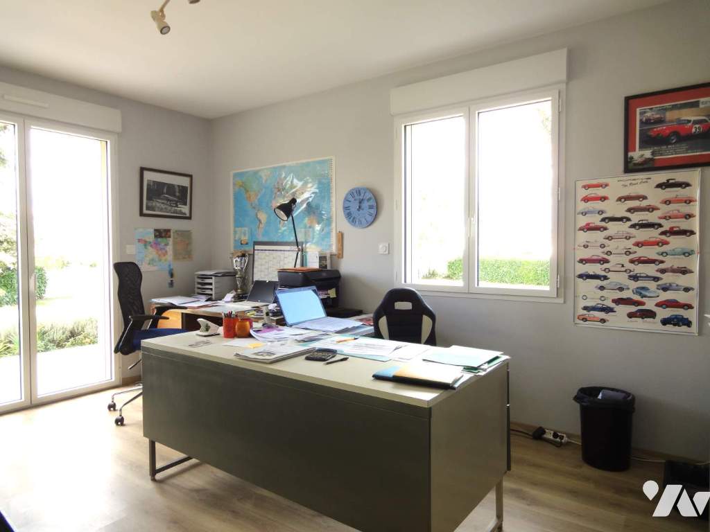 - au rez-de-chaussée, hall d’entrée avec placard, grand bureau de 17 m² avec entrée indépendante, chambre, WC, séjour-salon avec cuisine ouverte A/E (ensemble + de 45 m²).